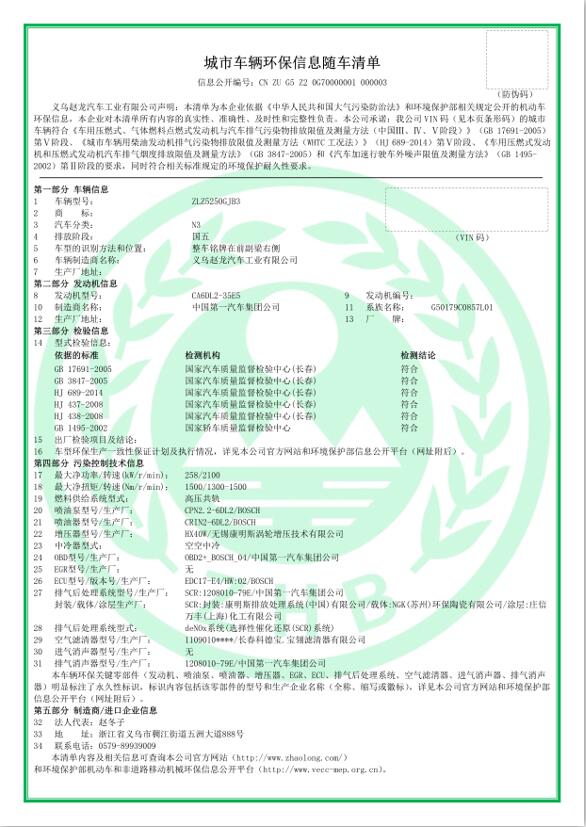 城市車輛環(huán)保信息隨車清單3